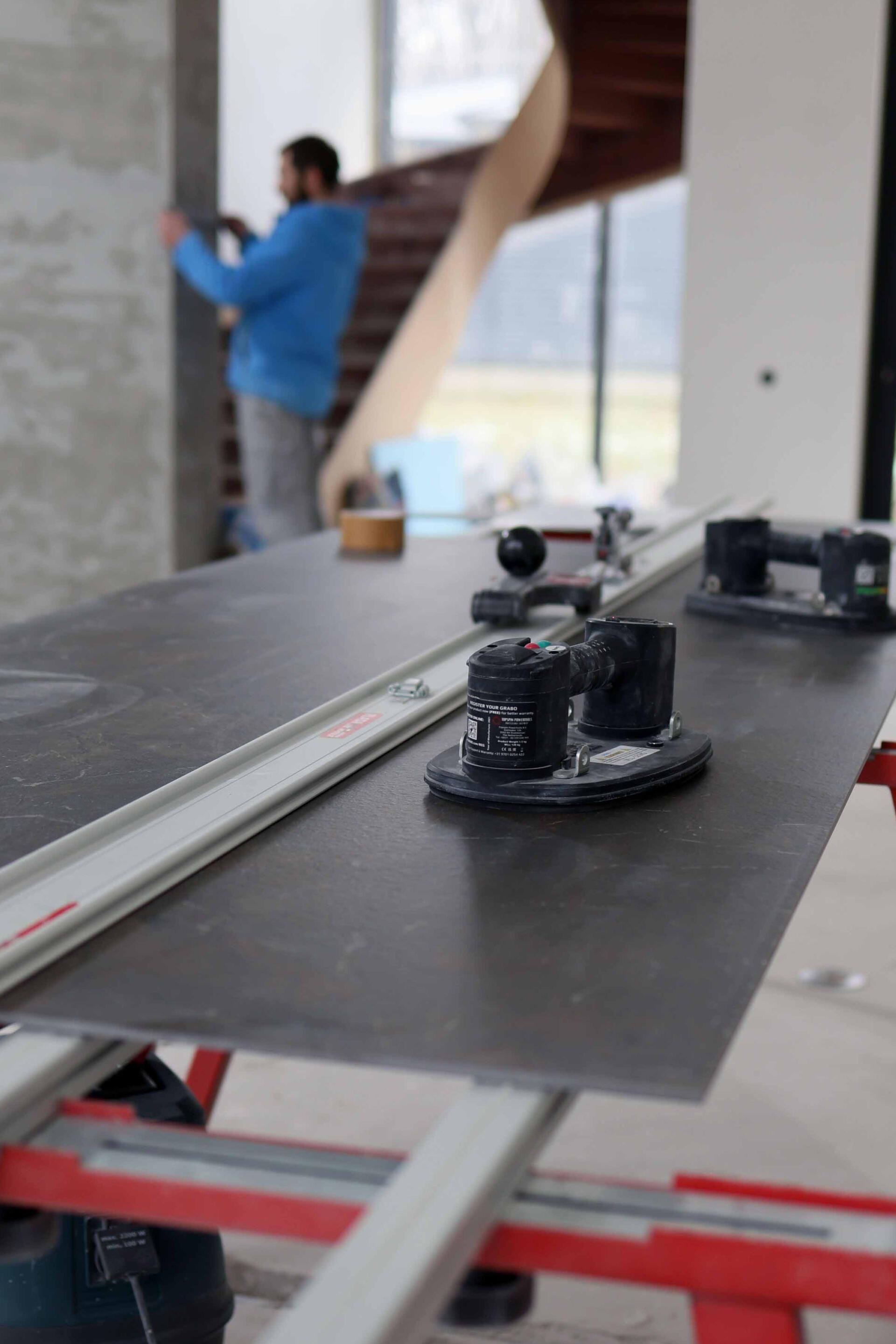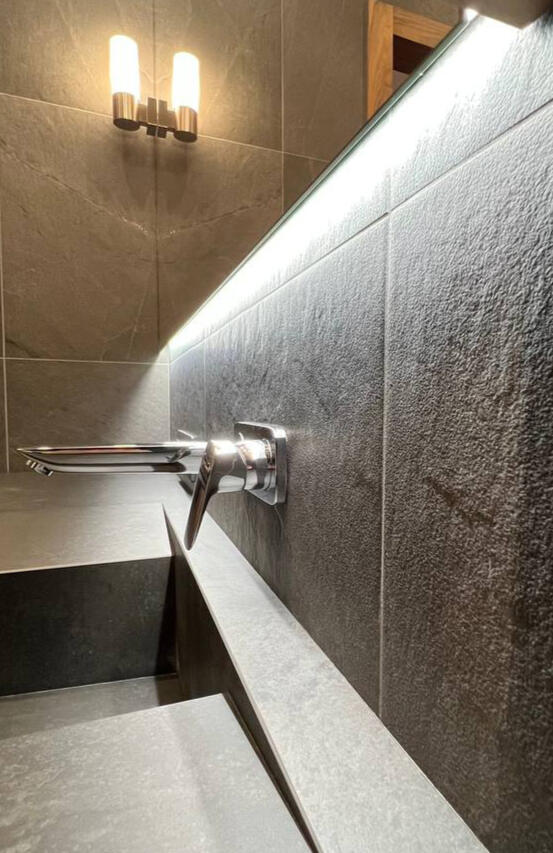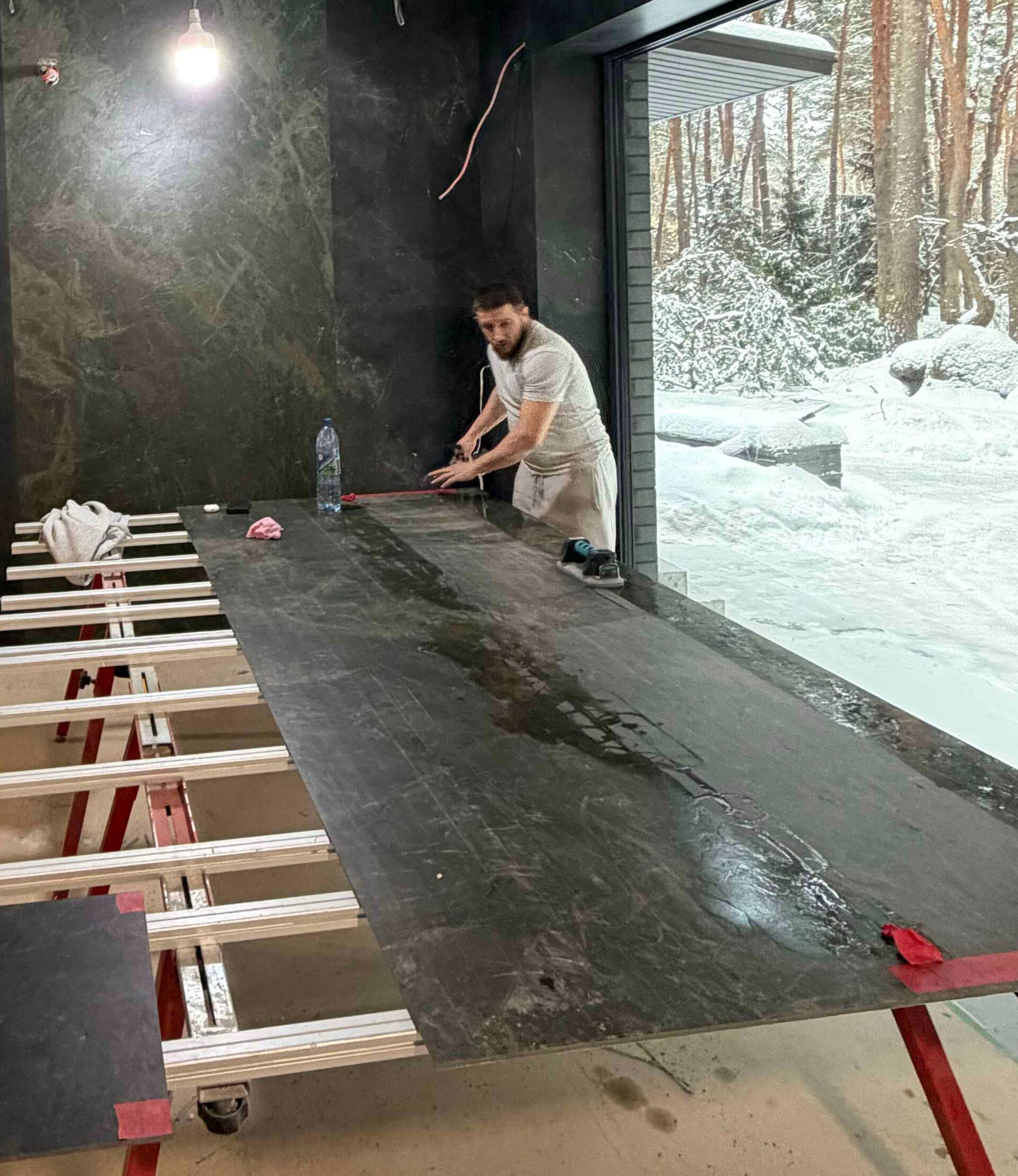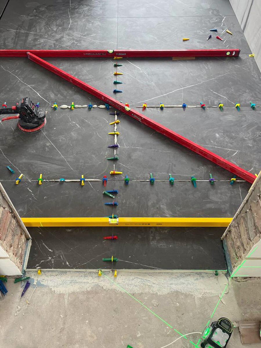 Плитка від 600×1200 до 1600×3200 мм — укладаємо те, від чого відмовляються інші.Великий формат вимагає іншого рівня підготовки: точного вирівнювання основи, спеціального клею, різки під 45° і досвіду роботи з важкими плитами. Ми спеціалізуємось на цьому — і знаємо кожну деталь процесу.— Різка під 45° без сколів
